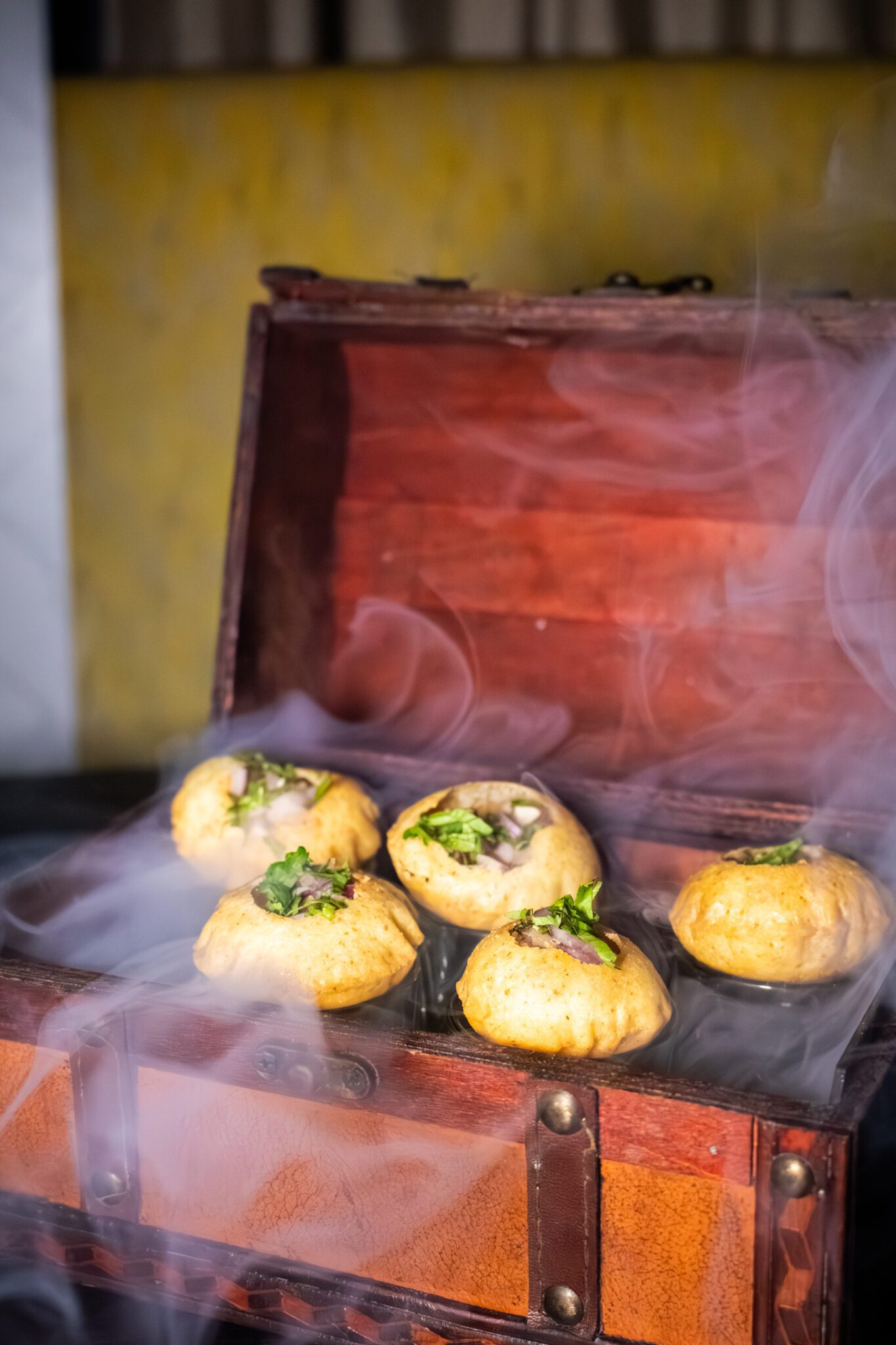 A vibrant Kiwi Pineappple Pani Puri experience – tropical, smoky, and full of glow